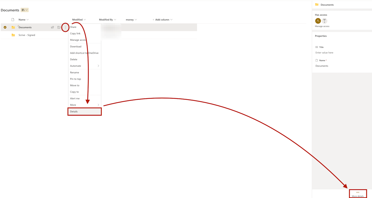 Once all parties have completed their required actions and the document has been signed and sealed, it is automatically offboarded to a folder called "Scrive-Signed," located under "Documents" in your SharePoint environment. The general file path for this would look like: