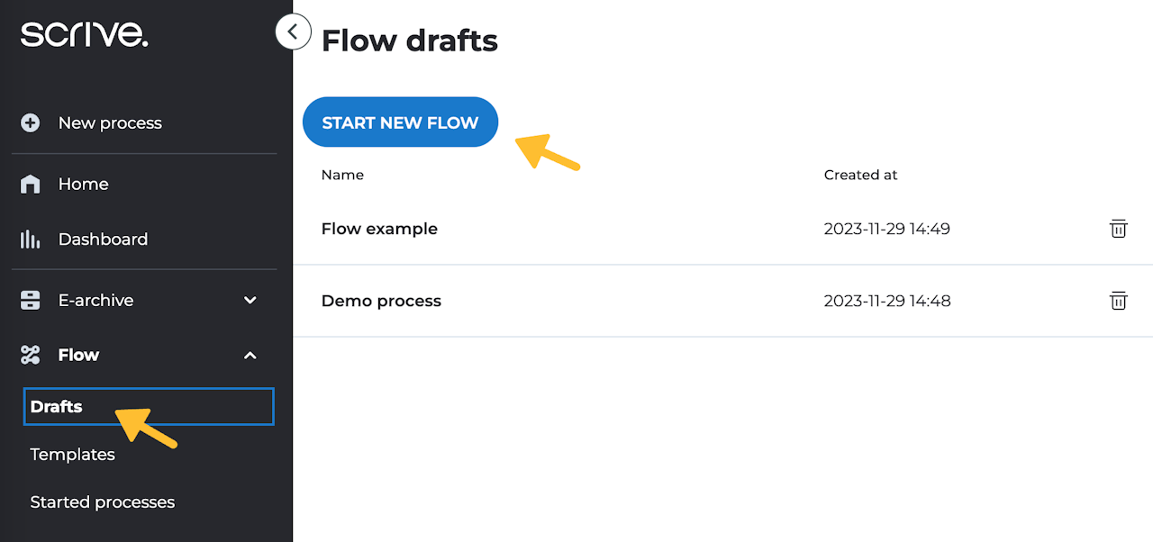 Navigate to "Flow" and then "Drafts" in the main menu to your left.