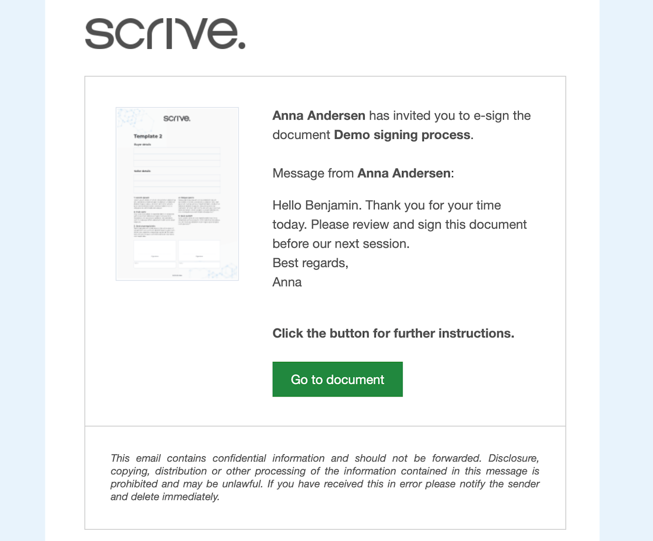 To begin with, you may have been invited to sign a document either through email (see image), SMS, a link or directly in person. Simply click to open the document in question and review the contents.