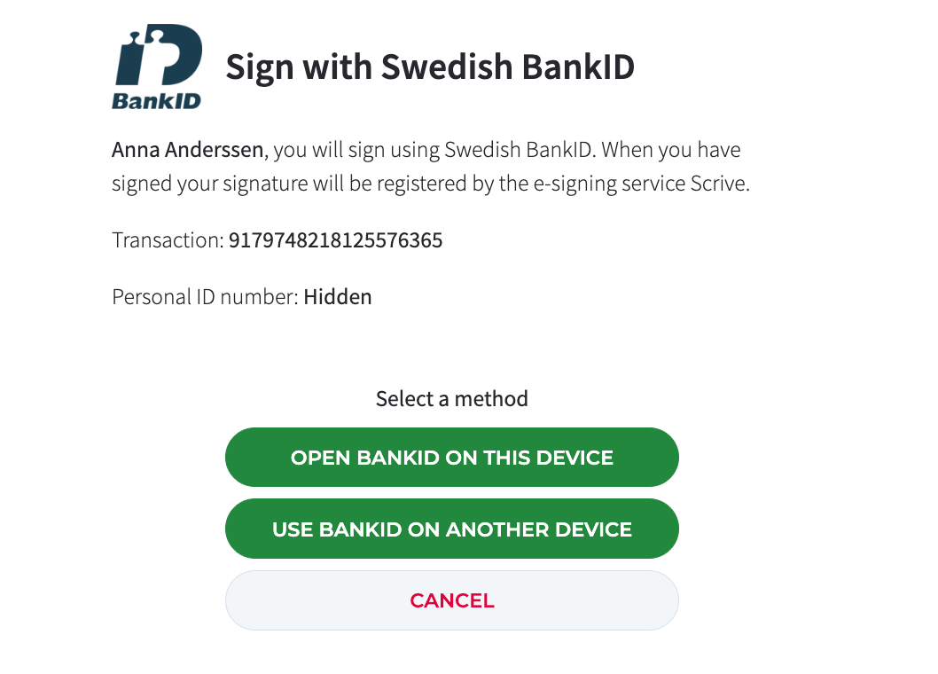 Depending on the settings the sender has chosen, you may be asked to authenticate yourself before signing the document. This may also be the case before you can access or view the document in the first place, or when you want to access it at a later time after the signing is completed.