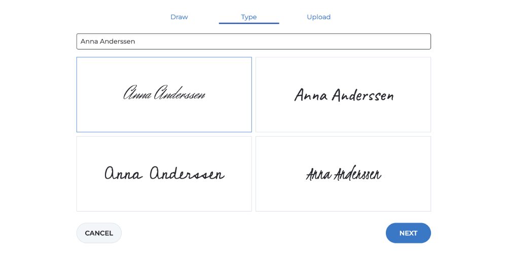 Draw: Manually draw your signature, similar to pen and paper.